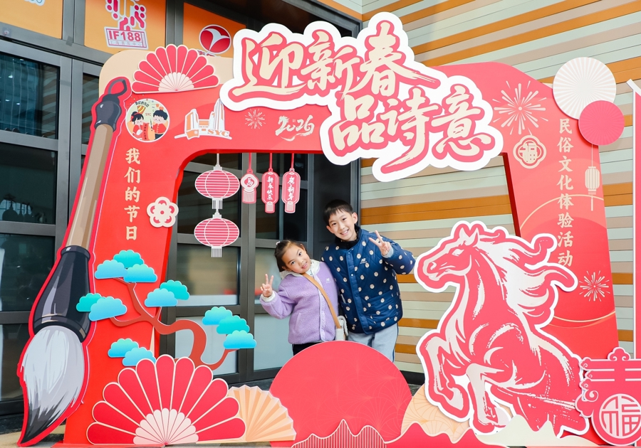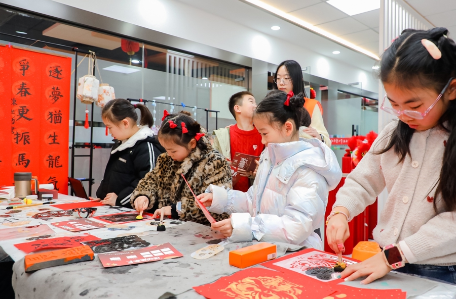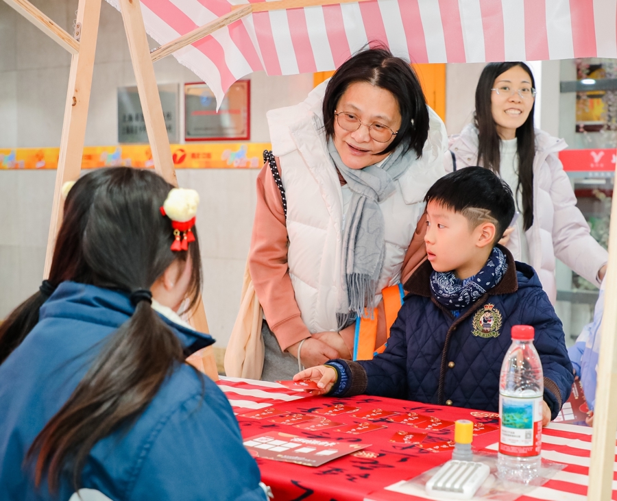 “一步一景、诗趣盎然”是现场的着实写真。这里不仅移交了“诗词里的中国年”图文展,还遮拦了诗句地贴和诗词路引。最受迎接的是诗词挑战摊位和风俗体验区,孩子们通过完成诗词接龙、诗词拼图、诗词飞花令等深嗜任务,以及体验拓印、彩泥、串珠等非遗手工活动来集会印记,调换新春小礼物。一面可触摸的“对诗词”互动翻翻墙前,参与者将洒落翰墨拼合成齐备诗句,在游戏中悄然记取了经典。