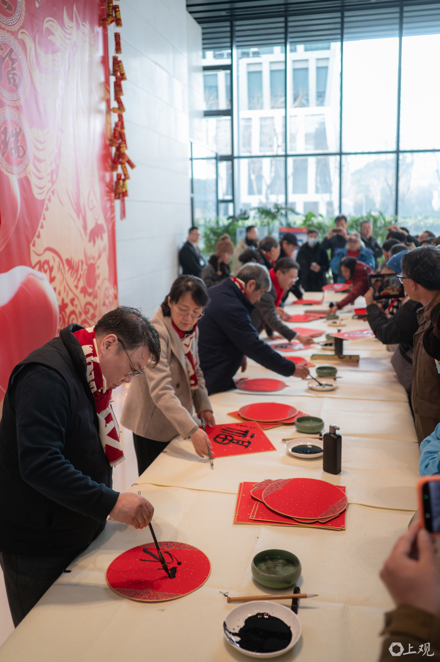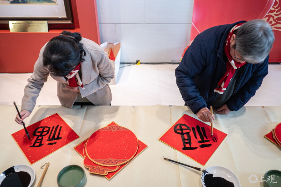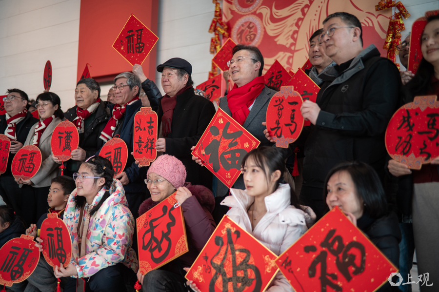 鲍莺、韩硕、丁申阳、杨正新等沪上字画名家现场挥毫泼墨,将满满的新春祝贺凝于笔端,为申城市民奉上了一份极具艺术温度的新年礼物。