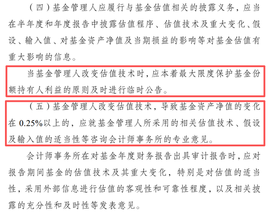 ‘枪弹财经’查阅了中国证监会在2017年发布的《证券投资基金估值业务的带领观点》,其中指出估值步地篡改需琢磨管帐师事务所的观点,并未提议需提前向监管备案或在当日往还收尾前文书投资者。