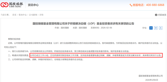 第二项公告讦生在2月6日,国投瑞银再次公告称“将积极处罚白银LOF投资者诉求”,走漏其已建立责任小组,正在攥紧酌量制定相关责任决策。